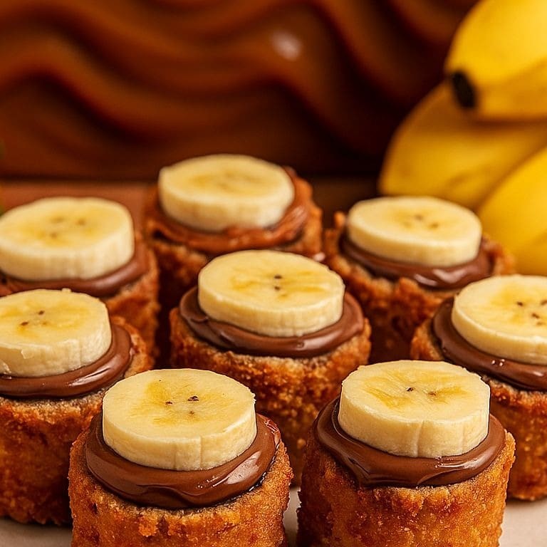 Sushi doce empanado e frito, recheado com banana, doce de leite e cream cheese. Quentinho, crocante e perfeito para os amantes de sobremesa!