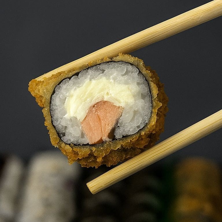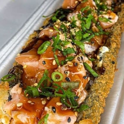 Uma versão turbinada do clássico hot roll! Sushi empanado e frito, recheado com salmão, cream cheese e arroz japonês. Crocante por fora, cremoso por dentro e finalizado com molho tarê. Perfeito para quem ama sabor em dobro!