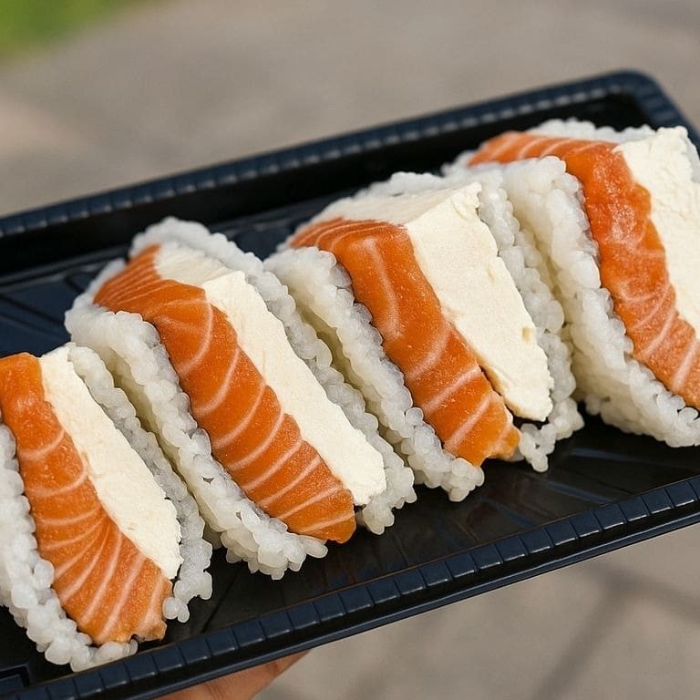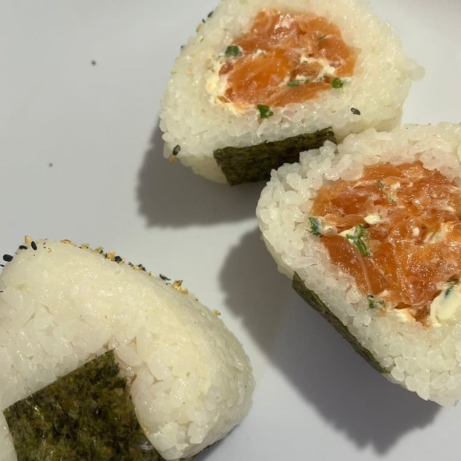Fomoso nas ruas do japão, oniguiri é um bolinho de arroz recheado com salmão e cream cheese.