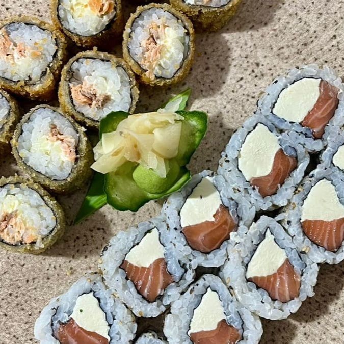 50 Peças: 10 Uramaki Skin 10 Uramaki Romeu e Julieta 10 Hossomaki Skin 10 Hossomaki Pepino 10 Hot Filadelfia *NÃO TROCAMOS OS ITENS