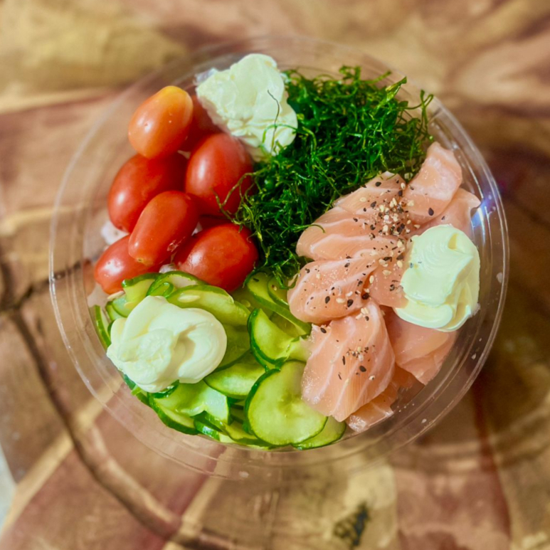 O Poke que vocês tanto amam em uma versao Maior! Base de arroz japones, tomate cereja, couve crispy, sunomono e proteina, salmão, salmão grelhado ou empanado!