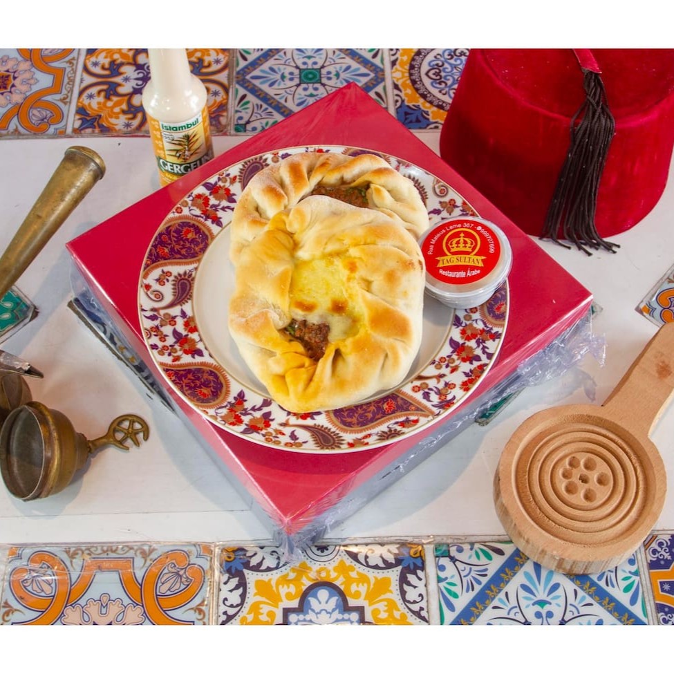 Esfiha da casa com creme de pistache e chocolate porcima