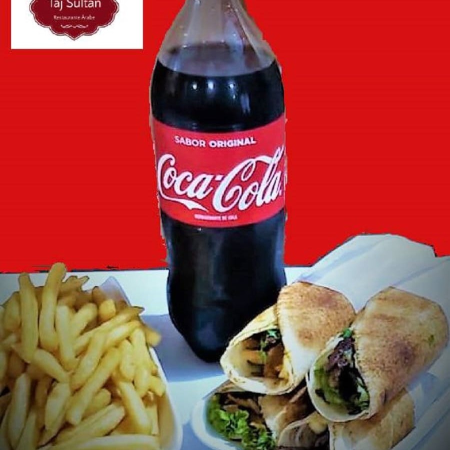 4 shawarmas de carne acompanhando 1 Coca-Cola 2l + Batata frita grande
