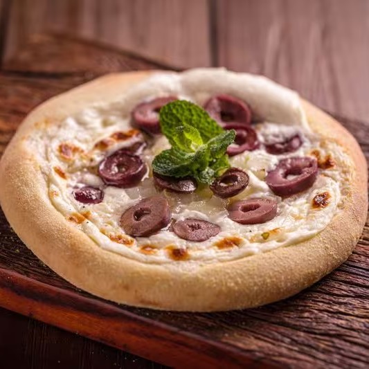 Deliciosa esfiha de coalhada temperada, exclusiva Al Sultan, azeitonas pretas, cebola picadinha. Tudo isso regado com delicioso azeite extra virgem 0,3%