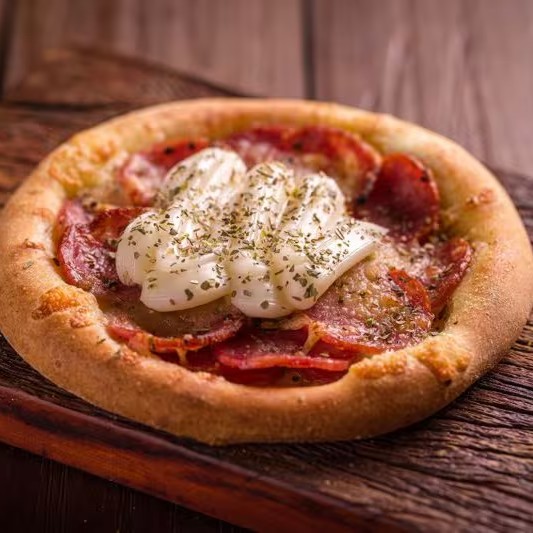 Deliciosa esfiha com muçarela, creme de alho suave, com sabor inigualável de churrasco.