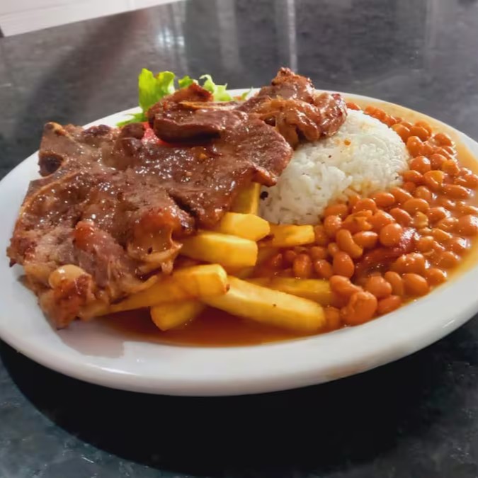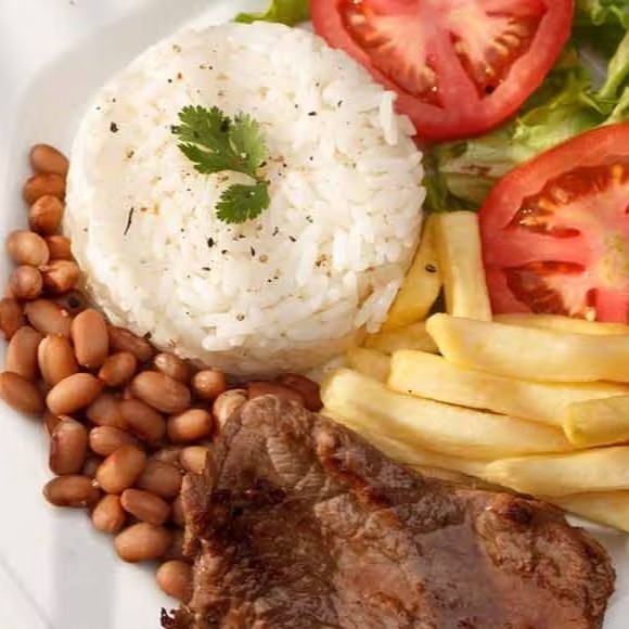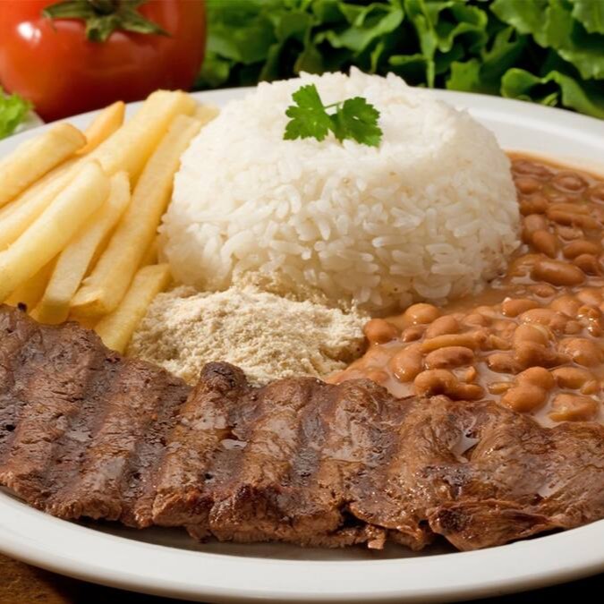 Arroz, Feijão (Branco Ou Preto), Macarrão, Farofa, Salada E A Carne Escolhida