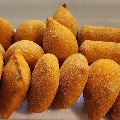 Nossa coxinha de frango é uma verdadeira delícia! A massa, super macia e leve, envolve um recheio generoso de frango desfiado, cuidadosamente temperado com cheiro verde, garantindo um sabor incrível e envolvente. Cada coxinha é frita na hora, em óleo de algodão, o que proporciona uma crocância perfeita por fora e uma maciez irresistível por dentro. Esse equilíbrio de texturas torna a nossa coxinha o petisco ideal para qualquer ocasião, seja para um lanche rápido ou para saborear com os amigos. Uma explosão de sabor que vai conquistar o seu paladar a cada mordida!