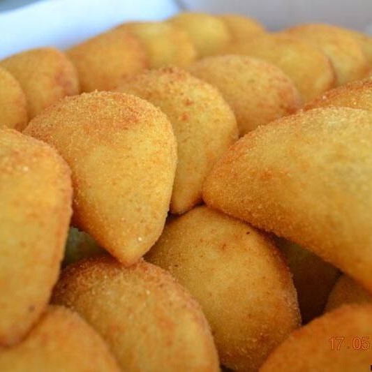 Experimente nossos risoles de carne, uma verdadeira delícia! Com uma massa macia e crocante, cada risole é recheado com carne moída suculenta, temperada com um toque especial de cheiro verde. Fritos na hora em óleo de algodão, eles oferecem uma crocância irresistível que complementa o sabor da carne. Perfeitos como aperitivo ou lanche, são uma explosão de sabor em cada mordida!