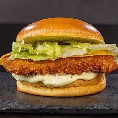 Nosso Delicioso Pão Brioche, Peito De Frango Empanado, Duas Fatias De Queijo Prato, Alface Americana E Molho Tártaro Alexandria.