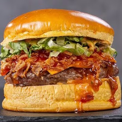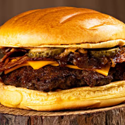 Nosso delicioso pão brioche, carne bovina (160g), cheddar melt, cebola caramelizada e duas fatias de bacon crocante.