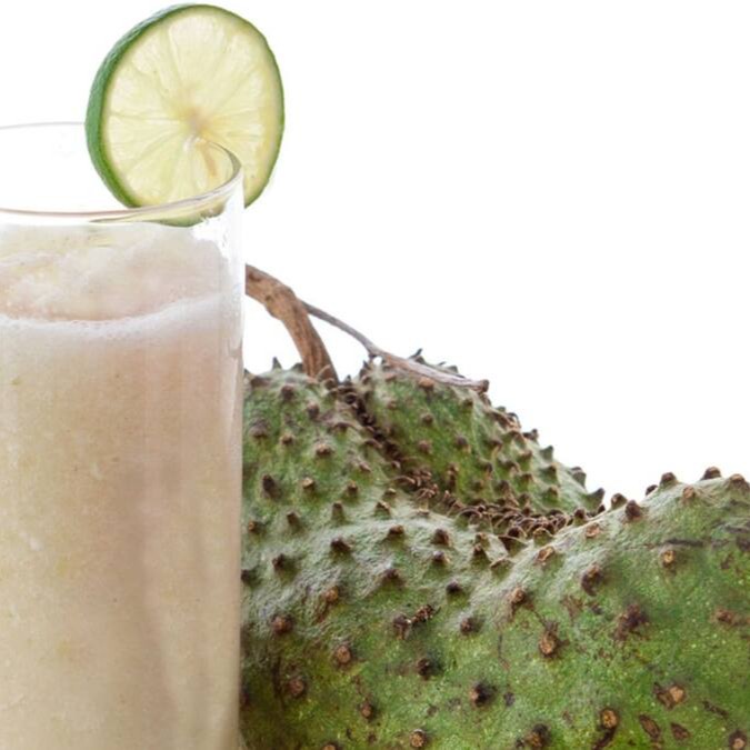 Polpa de Graviola batida com água sem adição de açúcar (300ml). A graviola possui diversos benefícios que auxiliam na manutenção de uma vida mais saudável. A fruta contém flavonoides, conhecidos por suas ações anti-inflamatórias, antivirais, antimicrobianas e antioxidantes; e sais minerais, como o cálcio, magnésio e potássio, auxiliam no controle da pressão arterial, na saúde dos ossos e no controle da contração muscular.