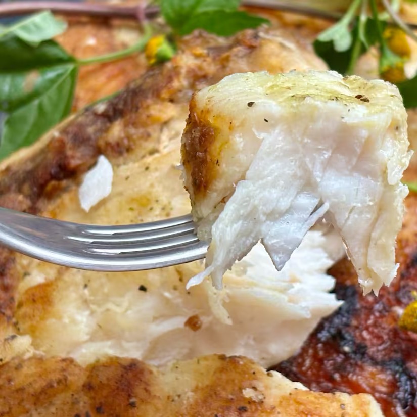 Somente a Banda de tambaqui sem espinha (~1200g in natura). Bem assada e de alta qualidade. Se preferir, menos assada, só solicitar nas observações. Nenhum condimento industrializado , pouco sal no tempero.