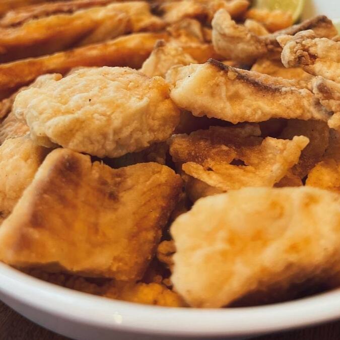 Releitura do famoso #Fish’Nchips Londrino. Costelas de Tambaqui Fritas (300g), aprox. 3 costelinhas; com 300g de batata frita.