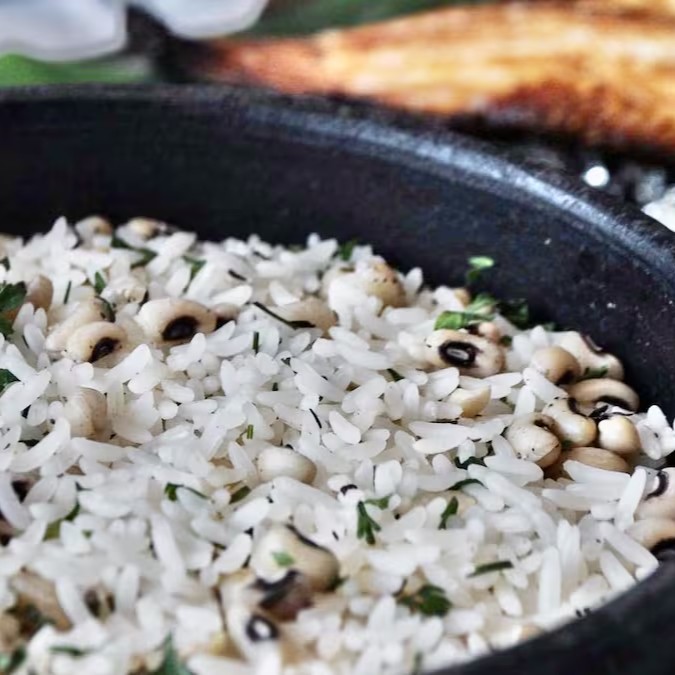 O clássico da Amazônia, Arroz branco, feijão fradinho e cheiro verde (150g). No Sul, substituímos o coentro por salsinha , ok? Se preferir arroz branco , escreve no pedido ️