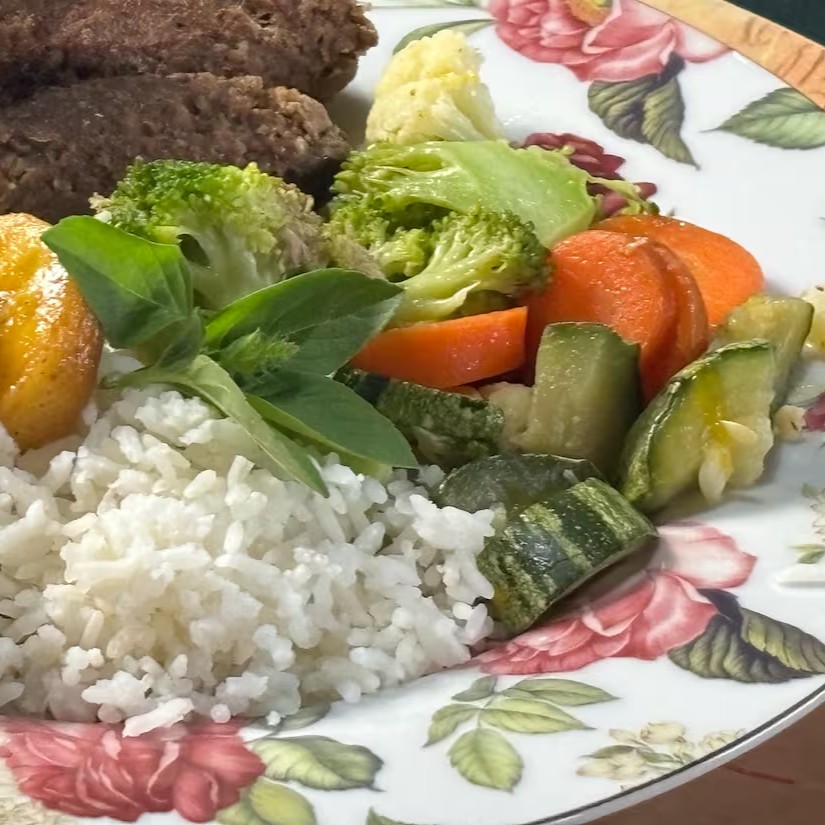 Que tal um "kibe vegetal"? Uma deliciosa e saudável opção para veganos, ou para você que está experimentando uns dias sem carne de origem animal. Contém carne à base de plantas grelhadas, composta por , quinoa, farinha de trigo, cebola e salsinha, tomate. Acompanha três guarnições de sua escolha para complementar sua refeição com sabor e equilíbrio. E lembre-se: seu paladar é sempre bem-vindo para sugerir melhorias e novos ingredientes. Bom apetite e viva a experiência #marmitatambaqui #marmitasaudavel #vegan!