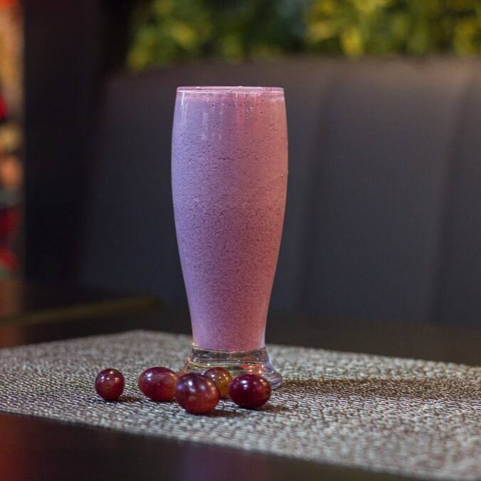 Bebida a base de iogurte com polpa de uva.
