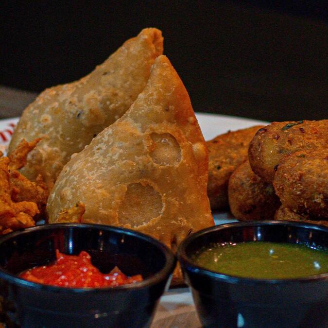Samosa veg, cutlet, acompanha pakora