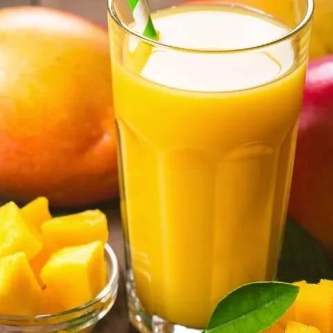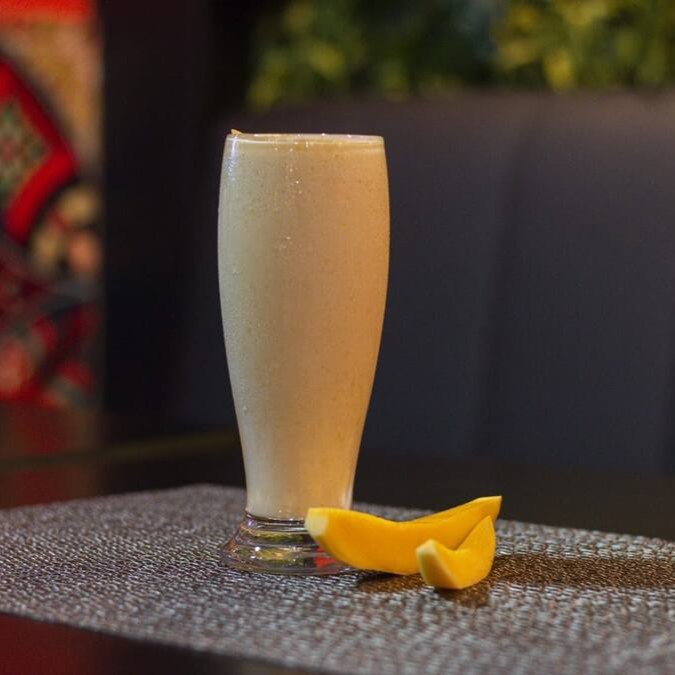 Bebida a base de iogurte com polpa de manga.