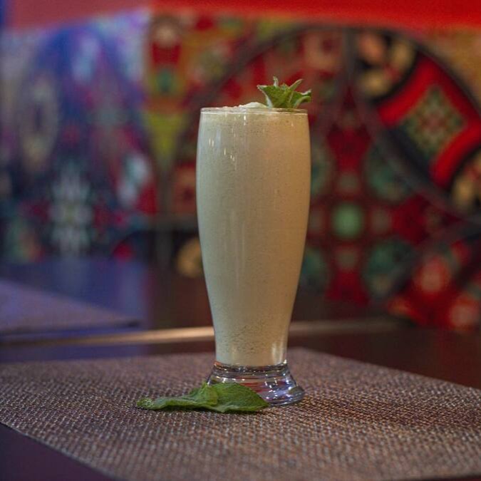 Bebida a base de iogurte com hortelã e sal.
