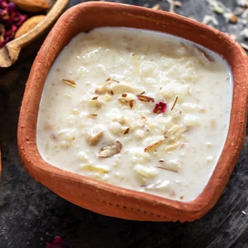 Arroz cozido no leite condensado com frutas secas e finalizado com cardamomo e especiarias indianas.