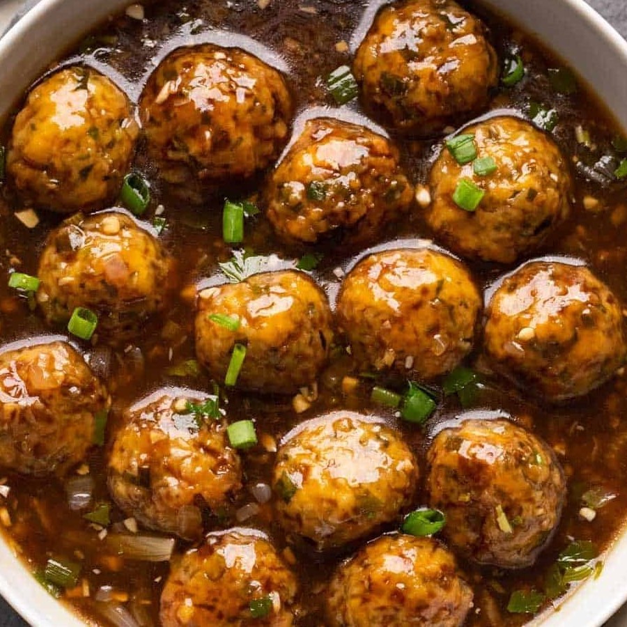 Bolinhas de legumes fritas e molho legumes com shoyu.