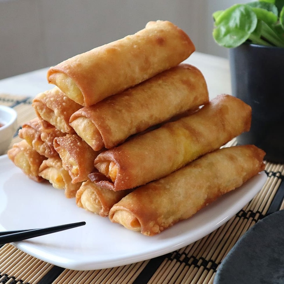 Massa crocante com recheio de Frango, repolho, cenoura, pimentão e cebola. Temperada com alho, gengibre e shoyu.