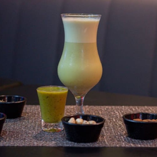 O nosso Lassi de maracujá consiste em uma mistura de iogurte, água, especiarias e maracujá
