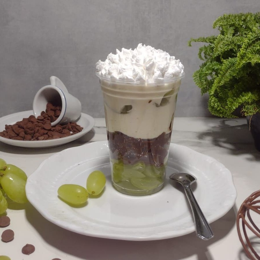 Camadas deliciosas de brigadeiro de chocolate, creme de Ninho super cremoso, uvas fresquinhas que trazem equilíbrio perfeito entre o doce e o frescor da fruta. Finalizado com chantilly para completar essa experiência única.