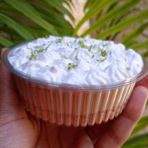 Tortinha de Limão feita com: Farofa de bolachas; Musse de limão; Chantilly.