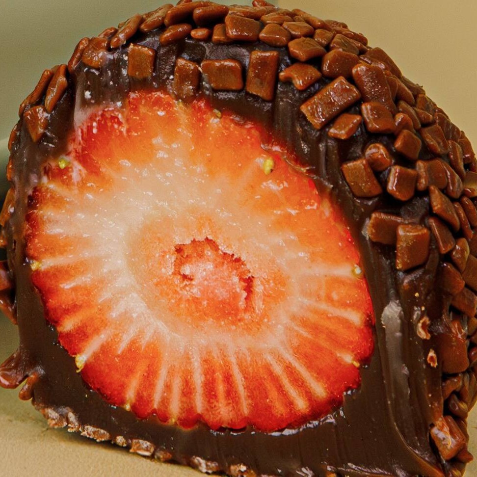 Uma delicada combinação de brigadeiro gourmet e morangos frescos. Morangos envoltos em uma camada cremosa de brigadeiro e finalizados com um toque especial de granulado belga.