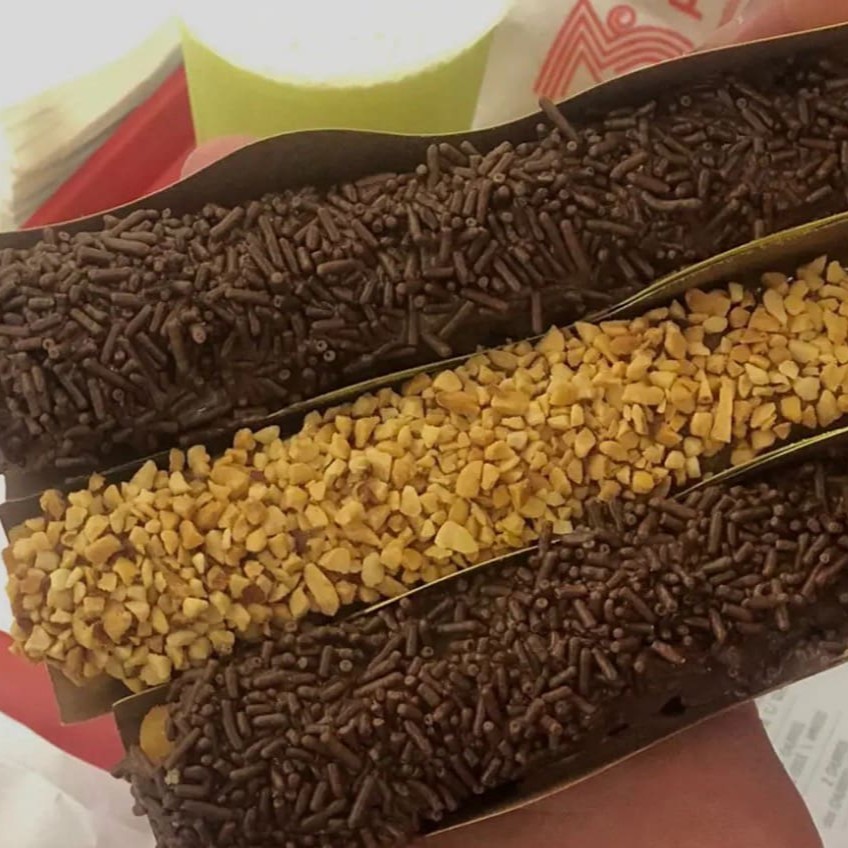 Churros tradicional recheado por dentro e cobertura no topo a sua escolha