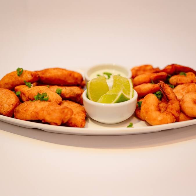 Tilápia 250g, Camarão 250g Bolinho de Siri ou bolinho de camarão 6 unidades acompanhado de nossa maravilhosa maionese da casa mais limão.