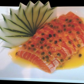 10x Sashimi de Salmão Selado com Gergelim, e Molho Teriyaki