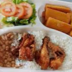 2 pedaços de frango frito, arroz, feijão, salada, maionese e fritas ou polenta
