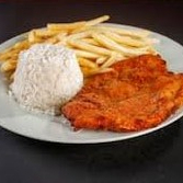 Filé de Frango a milanesa, arroz, feijão branco e fritas ou polenta