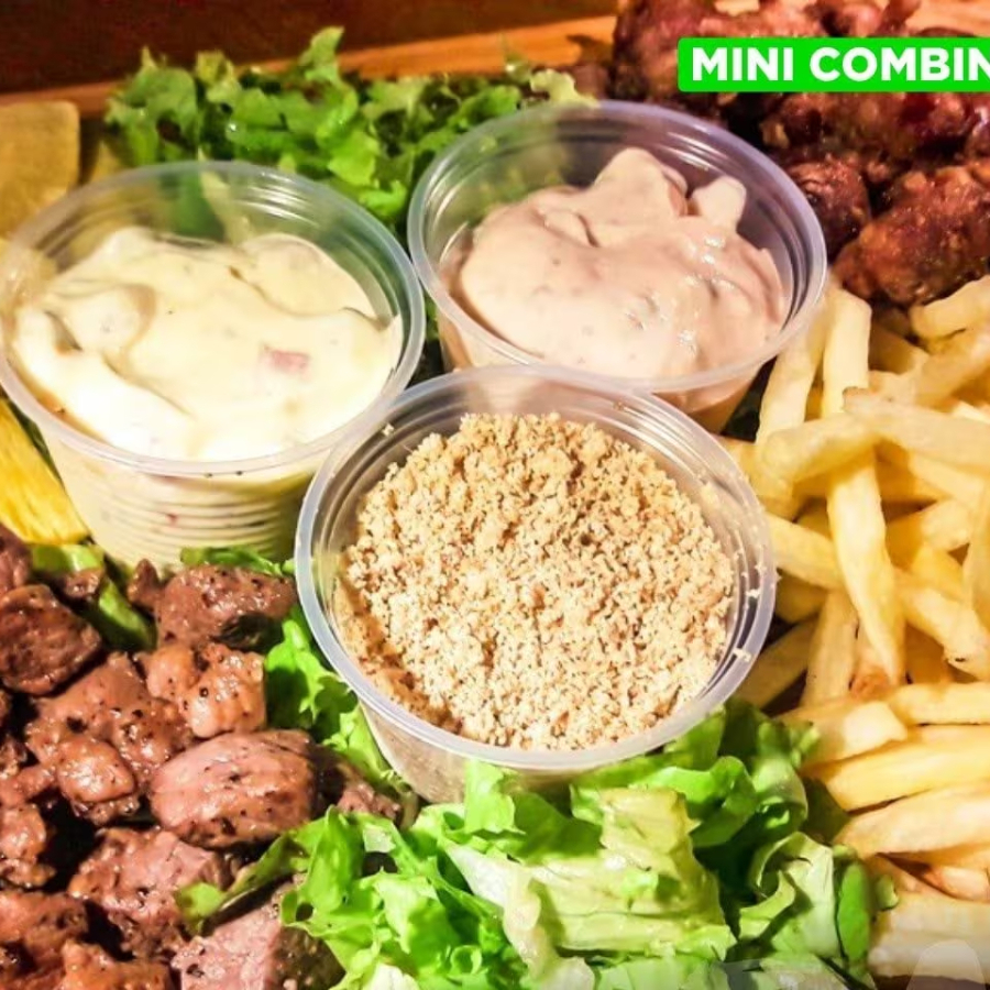 Prepare-se para se apaixonar. Nosso Combinado Anita traz a Alcatra macia em cubos, grelhada perfeitamente e mergulhada no tempero exclusivo que faz a nossa fama. Para a crocância perfeita, adicionamos o viciante Coração de Galinha à Milanesa (sequinho e no ponto!). A festa de texturas continua com a dupla imbatível: Batata Frita dourada e Polenta Frita artesanal. Tudo isso acompanhado dos molhos que dão o toque final: Molho Tártaro Cremoso, Molho Rosé aveludado e a nossa famosa Farofa de Alho. O Prato leva um porção completa de alcatra, coração, batata frita e polenta frita! Um prato Perfeito Para Compartilhar Com A Familia. Peça agora e se delicie!