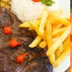 Desfrute de uma refeição cuidadosamente preparada para oferecer o máximo em sabor, qualidade e frescor. Nosso prato Executivo é composto por arroz branco soltinho, feijão preto temperado, batatas fritas, salada de alface e tomate, e o destaque do prato: Alcatra grelhada suculenta e com um sabor inconfundível! Ideal para quem quer uma refeições completas, práticas e preparadas com atenção aos detalhes.