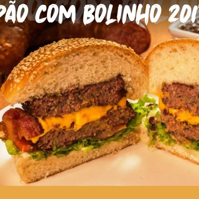 Pão, hambúrguer artesanal de carne moída misturada com linguiça blumenau e especiarias, queijo, presunto e maionese caseira.