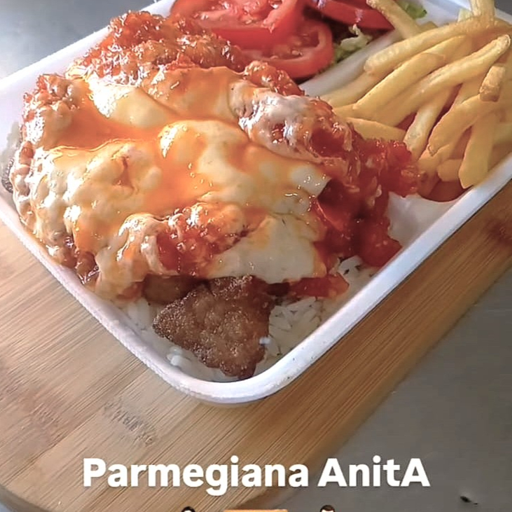 Parmegiana de Tilápia é uma opção de refeição completa, saborosa e única na região. Tilápia em Filés selecionados, são empanados artesanalmente, fritos até ficarem dourados e crocantes, e então cobertos com um molho de tomate caseiro, encorpado e cheio de sabor, finalizados com queijo mussarela derretido e gratinado no ponto certo. Para acompanhar, um prato completo: arroz branco soltinho, feijão preto bem temperadinho, batata frita crocante feita na hora e uma salada fresca de alface e tomate. Uma refeição pensada para quem quer fugir dos lanches e curtir uma refeição de verdade, com sabor caseiro e ingredientes de qualidade. Exclusivo no nosso cardápio!