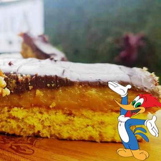 Torta Amanteigada Escocesa Butterscotch Barra com 120g. Massa Amanteigada com castanha do Pará e Amêndoas, caramelo cremoso, coberto por ganache de chocolate meio amargo.