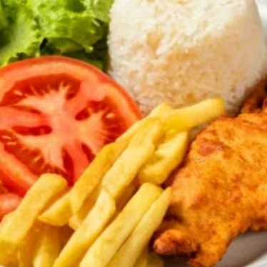 Desfrute de uma refeição cuidadosamente preparada para oferecer o máximo em sabor, qualidade e frescor. Nosso prato Executivo é composto por arroz branco soltinho, feijão preto temperado, batatas fritas, salada de alface e tomate, e o destaque do prato: Filé de Tilapia à milanesa empanado com uma farinha especial da casa, mantendo a suculência e o sabor inconfundível! Ideal para quem quer uma refeições completas, práticas e preparadas com atenção aos detalhes.