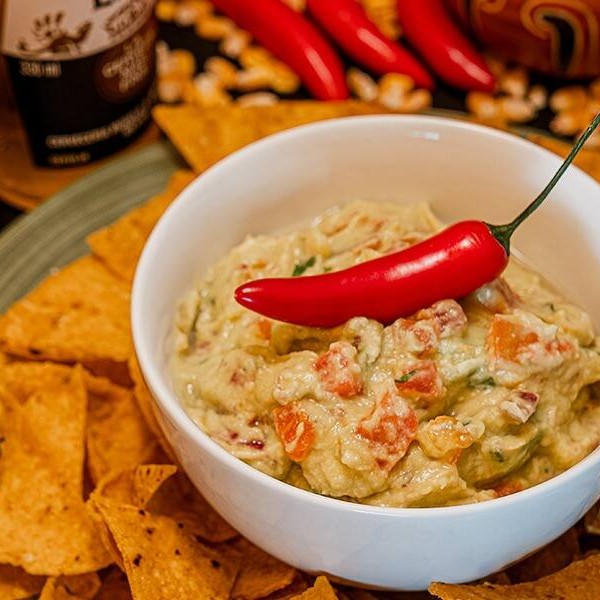 Guacamole Tradicional Com Totopos De Tortilla Caseira.