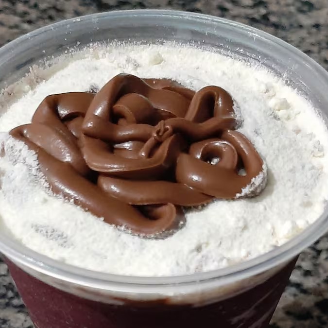 Delicioso Açaí com leite em Pó e Creme de Avelã com Cacau.