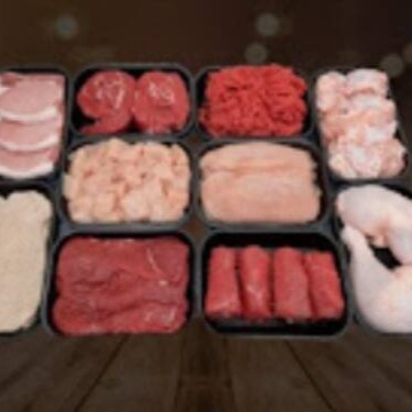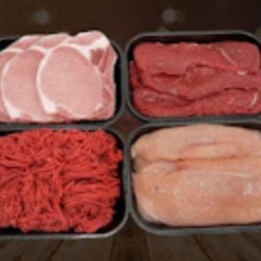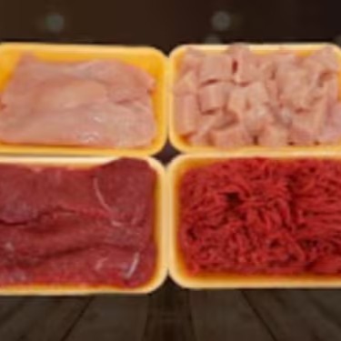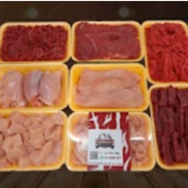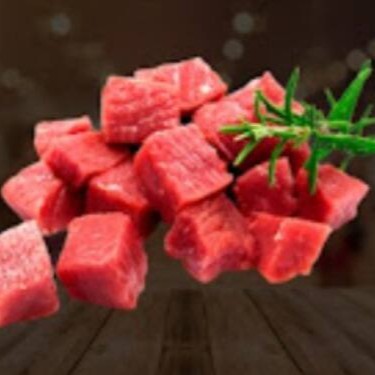 1 bandeja contendo aproximadamente 0,500gr de Músculo sem osso em cubos.