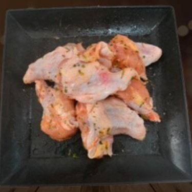 Ingredientes; Tulipa de frango,sal,oleo de soja,colorau e salsinha.