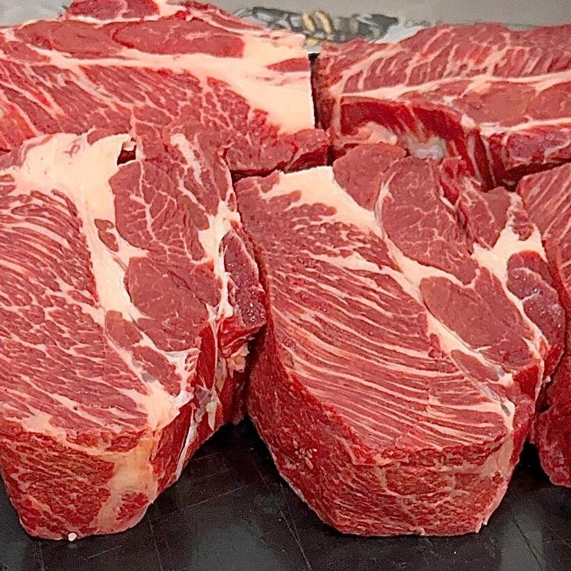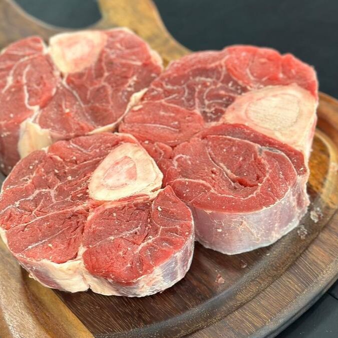 Musculo bovino cortado em fatias, perfeito para carne de panela e ensopados. Carne magra e deliciosa! Aproximadamente 500gr