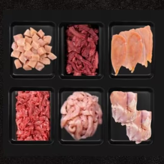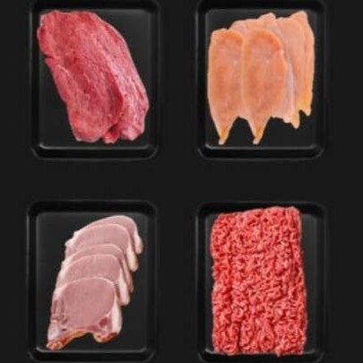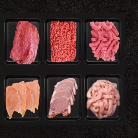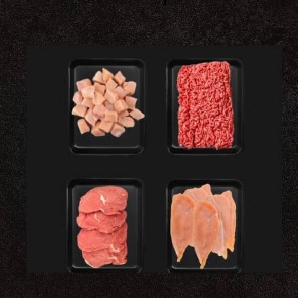 Cada bandeja contem aproximadamente 0,500 gr de proteína, totalizando aproximadamente 3kg de carne.