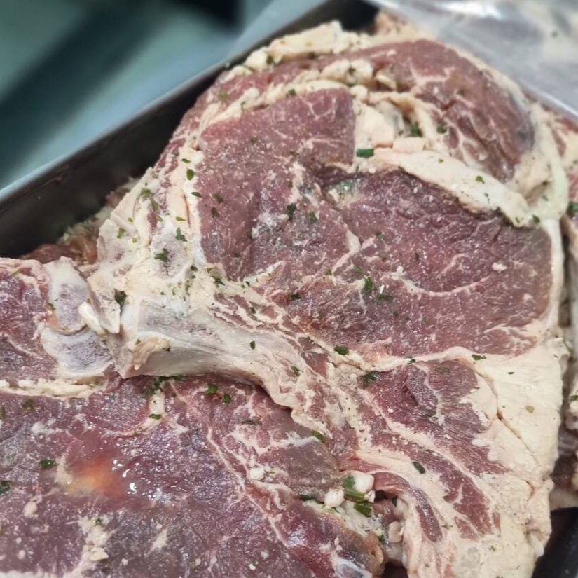 Delicioso contra filé com osso marinado no tempero do rei, preparado artesanalmente. Do Rei dos Cortes para sua churrasqueira! Aproximadamente 1kg