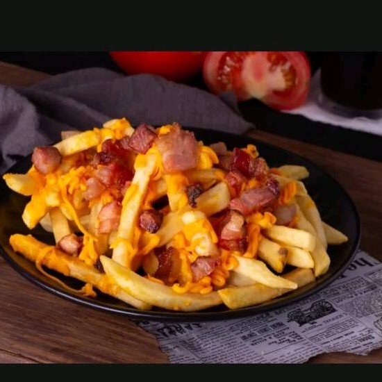 200g de Batata frita e 50 gr de bacon com cheddar cremoso