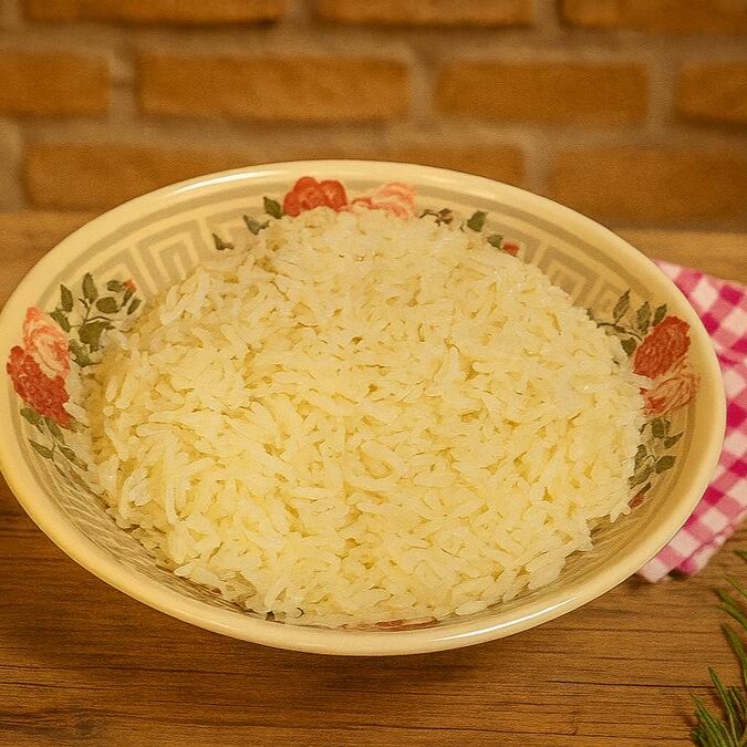 Arroz branco soltinho e fresquinho, preparado no Dia para garantir sabor, leveza e qualidade.